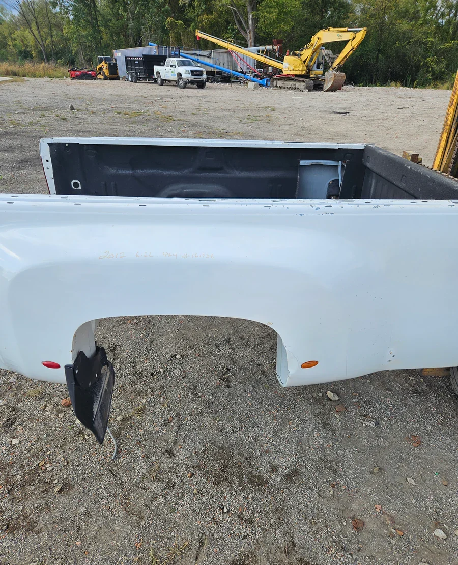 Our 2007-2013 Chevrolet Silverado / GMC Sierra 3500 HD 8′ Dually Bed take-off  typically come rust-free. Having  minor cosmetic wear consistent with use. Most include the tailgate opening, inner bed floor, stake pockets, and fuel door cutout intact. Paint color and condition may vary, and we offer color-matching and refinishing options upon request.